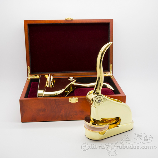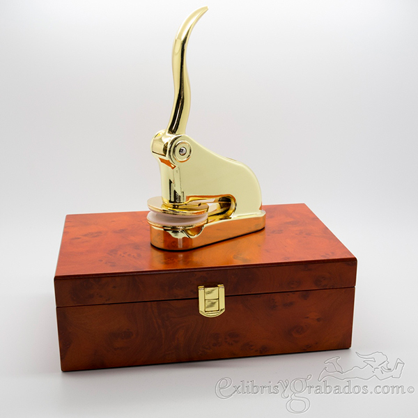 Palanca profesional dorada 50 mm de sello en seco + Caja de madera